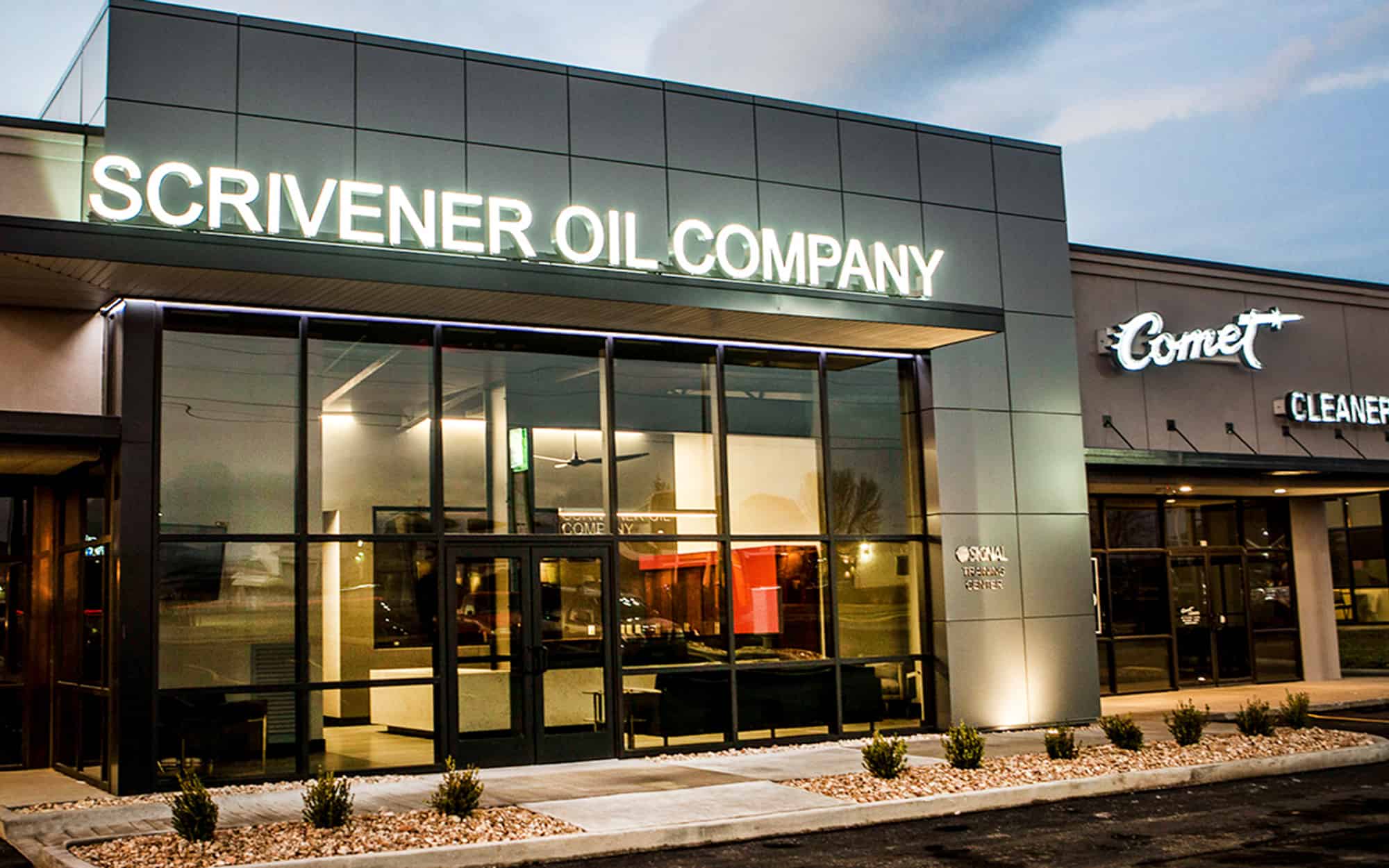 For the Corporate Office and Training Center, Scrivener Oil Company wanted to stay consistent with the Signal brand but not look like a store. So, a sister brand was created:
